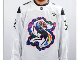 Specialty Kraken Jersey designed by Vegas Vecchio in honor of Pride Night on January 8, 2026. Crested with the letter "A", player's name & number, and signed by #6 Adam Larsson, size 56 (Made in Canada).