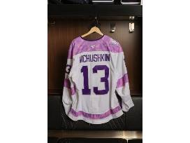 Colorado Avalanche Team-Issued Hockey Fights Cancer Jersey. Size 56.