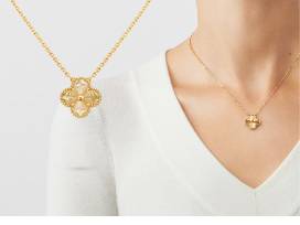 Timeless and effortlessly elegant, the Vintage Alhambra pendant features the Maison's iconic four-leaf clover motif, symbolizing luck, health, fortune, and love.
