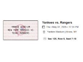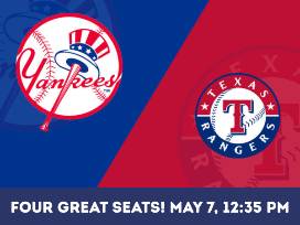It would be hard to get better than this! See the Yankees take on the Texas Rangers. Don't miss the action, the energy, and the chance to see some home-run magic from prime seats.