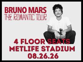 Get ready for an unforgettable night of music, energy, and nonstop hits with 4 FLOOR SEATS to see Bruno Mars live at MetLife Stadium on August 26, 2026!