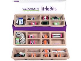 The LittleBits Deluxe Kit offers the most creative inventing possibilities of any Kit! It has 18 color-coded Bits that snap together with magnets to make over 5 million simple and complex circuit combinations. The Deluxe Kit was designed for endless hours of fun and includes both the DC motor (with motorMate accessory) and servo motor (with servo accessories), a wide assortment of wire Bits like the fork, inverter and latch, as well as the timeout and light wire Bits. The Deluxe Kit is a well-stocked littleBits collection just by itself and includes everything you need to start designing and prototyping your own interactive creations. There is also an expansive project booklet with step-by-step instructions for 15 spectacular inventions like the Unihorn Helmet, and the famous Swimming Shark. With so many invention possibilities, your kids will run out of steam before this Kit runs out of utility. The Deluxe Kit is a long-term investment in creativity!