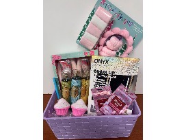 Treat someone special to the ultimate at-home spa day. Packed with fun bath treats, a lighted glam mirror, plush accessories, and pampering essentials, this basket delivers relaxation with a touch of sparkle.