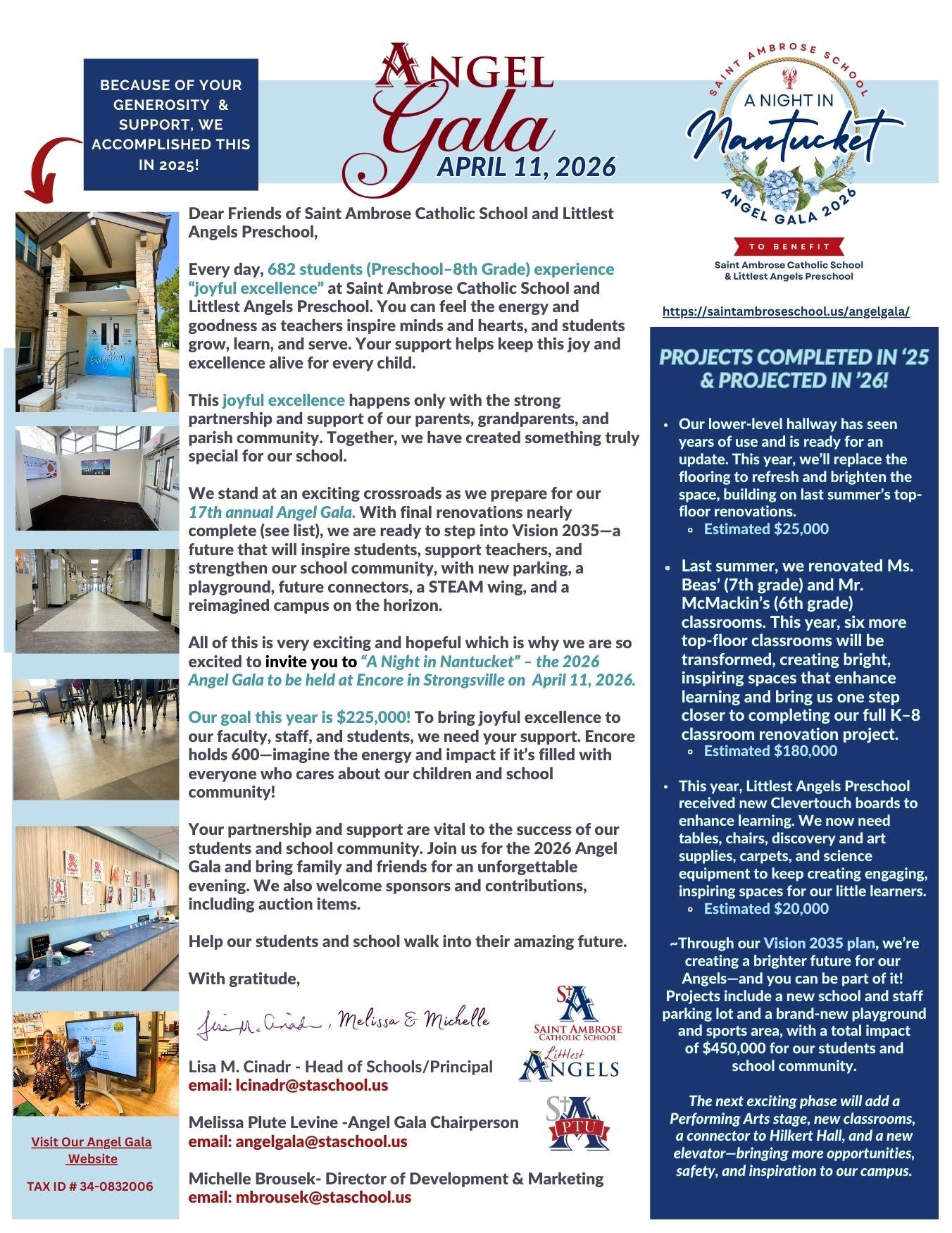 Saint Ambrose Catholic SchoolContact our 2026 Angel Gala Team with any questions in regards to the event.