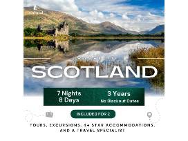 Fabled figures, kilt-clad bagpipers and characters as colorful as Scottish tartans will be part of your enchanting 8-day, 7-night adventure for two in Scotland.