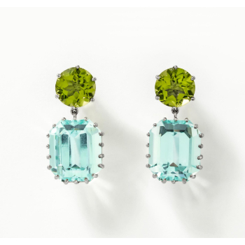 Enter for your chance to win a stunning pair of 18K white gold drop earrings generously donated by Shreve, Crump & Low. This elegant design features vibrant round peridot and emerald-cut aquamarine gemstones set in a refined multi-prong setting - a timeless piece perfect for any occasion. The item is valued at $8,500.
