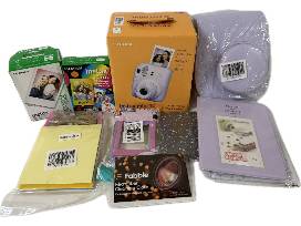 Capture memories the fun, instant way with this lilac Fujifilm Instax Mini 12 instant camera bundle! Perfect for parties, travel, or everyday moments, this easy-to-use camera prints credit card-sized photos in seconds. Package includes a protective case, photo album, 10 sheets of rainbow film, 20 sheets of regular film, frames and other accessories.
