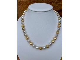 A classic 18 inch strand of luminous South Sea pearls ranging from 8-10mm, featuring a natural blend of golden, white, and silvery tones with a 14 karat yellow gold clasp. Elegant, timeless, and perfect for any occasion. Truly a one-of-a-kind piece. Retails for $3,995.