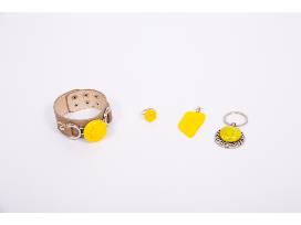 Add to your jewelry collection with this fun set in yellow glass, handmade by James Hayes Art Glass Co.