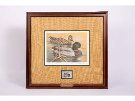 Add to your collection or start a new one with this rare 1995 Artist Proof Arkansas Duck Stamp Print with mint stamp, signed by artist Larry Hayden.