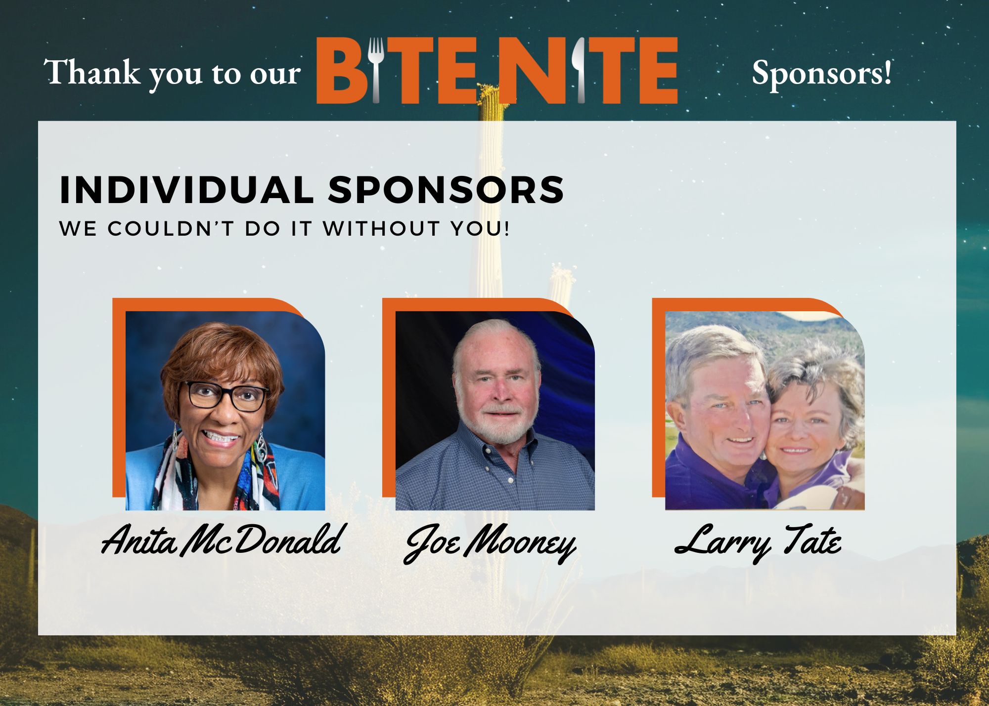Recognized as Best Annual Event by Arizona Foothills Magazine, Bite Nite offers an elevated evening filled with chef-crafted bites from local favorites, live music, mystery boxes, silent auctions, and an inspiring program that highlights the power of community and hope.