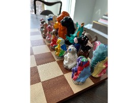 The 1JS students collaborated to create a vibrant chessboard, with each child painting and decorating their own chess piece, resulting in a colorful and playful final work. The light between the pieces represents the individuality of each child. The colors of the chess pieces symbolize each child's unique mindset, and each chess piece reflects an action-showing how the way we play, think, and make choices can lead to different outcomes.