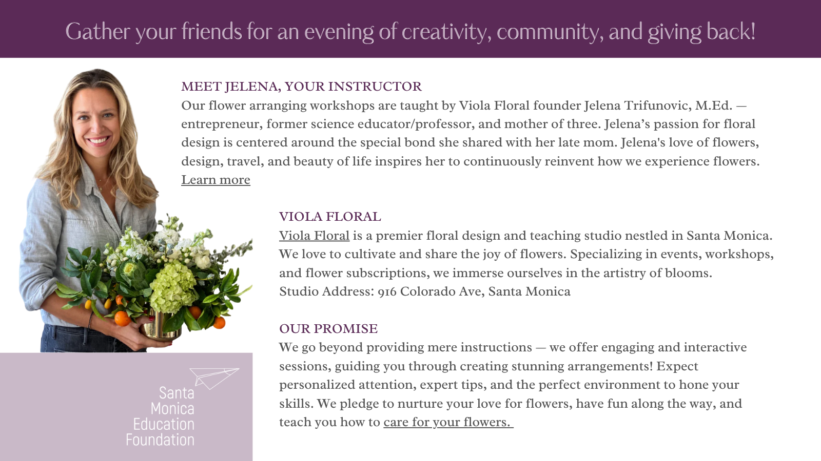 Your participation directly supports vibrant, enriching programs for all Santa Monica public school students. Every petal has a purpose!