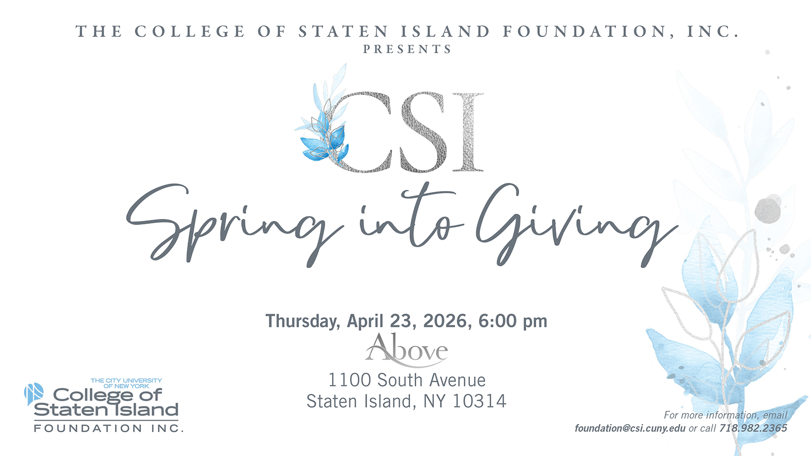 Cordially Invites You to Attend the College of Staten Island Foundation, Inc. Annual Benefit: Spring into Giving