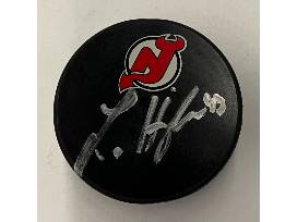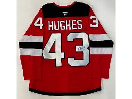 Luke Hughes New Jersey Devils Autographed Red Jersey and Autographed Puck