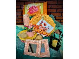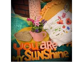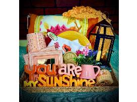 Add a burst of color and warmth to your home with this stunning collection of decor and dining essentials. Perfect for creating a joyful, inviting space, this basket features: Fiesta ware plates, placemats, cloth napkins, throw pillow, lantern, mirrors, candles, silk flower arrangement, and a You are my Sunshine sign Perfect for spring!