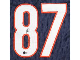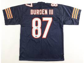 Hand-signed jersey of Chicago Bears' rising star Luther Burden with his Rookie preseason # before changing to #10. This item is very rare! The autograph(s) includes an official James Spence Authentication (JSA) "Signature Debut" hologram.
