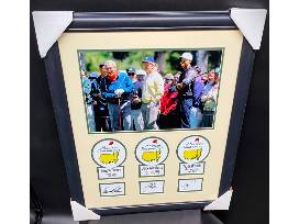 - Masters Collage featuring the 'Masters of the Master' group photo of Arnold Palmer, Jack Nicklaus and Tiger Woods with cream suede mat complete with Masters logo, dates of Championship wins and laser signatures
