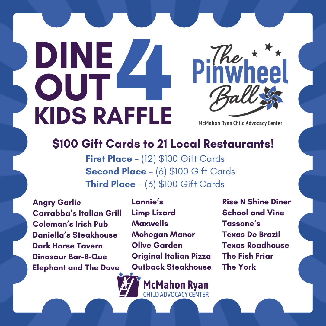 Every ticket purchased for our Dine Out 4 Kids Raffle does more than enter you into a chance to win gift cards to some of Central New York's favorite local restaurants-it fuels the mission of the McMahon Ryan Child Advocacy Center.