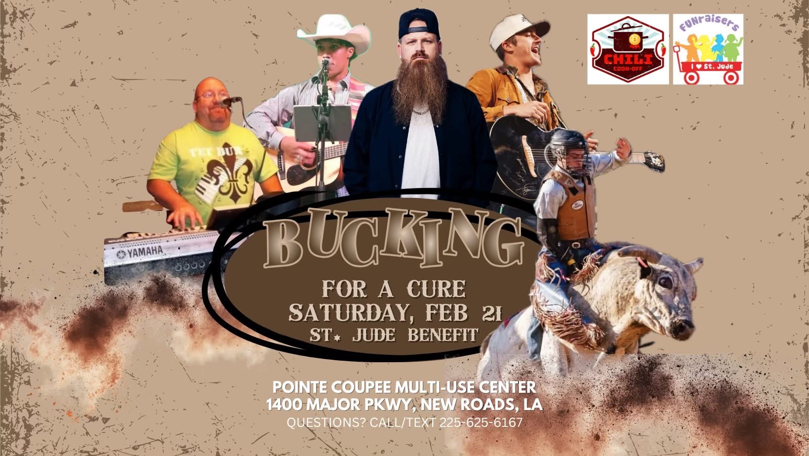 Chili cookoff, farmers market, kids rodeo, bull riding, and music all to benefit St Jude Children's Research Hospital.