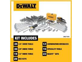 With the 168 Piece DEWALT Mechanic Tool Set, you can be sure you have the right tool for the job. The set includes three Pear Head ratchets and a variety of sockets, extensions, universal joints and adapters. The sockets and wrenches in the tool sets for mechanics include DirectTorque technology to help prevent rounding of fasteners and to provide better grip.