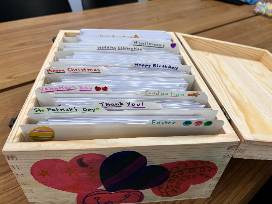 Win a collection of handmade notecards crafted with heart and soul by Ms. Roberts' 3rd graders. Fill your notecard collection with more than 100 different "Thank you", "Merry Christmas", "Happy Birthday", many others, and even a Make Your Own kit. Includes a storage box created by the class.