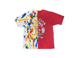 Airbrush and paint on cut and sewn shirt. One of a kind, 2024