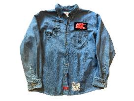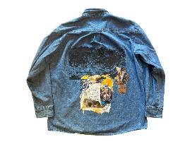 Print and patches on button-up. One of a kind, 2025