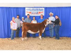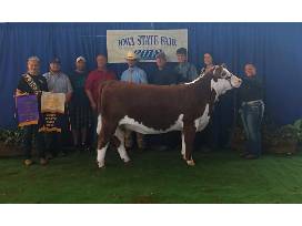 Flawless Queen is one of the top direct daughters of TCC Diana 01 in the country. She is sired by the Denver Supreme Champion, Nitro Aventus, making her one of the few daughters in the country from that mating. She has a laundry list of banners from across Iowa including being Iowa State Fair Grand Champion Hereford in both the 4-H and Open Show. Now in production, she is matching her show ring ability with producing banner raising daughters. A Montgomery daughter was Reserve Grand Champion Horned Female in the Iowa State Fair Open Show and a 124Y daughter was Reserve Grand Champion Horned Female in the Iowa State Fair 4-H Junior Show! A 124Y daughter is one of our top young females in the replacement pen!