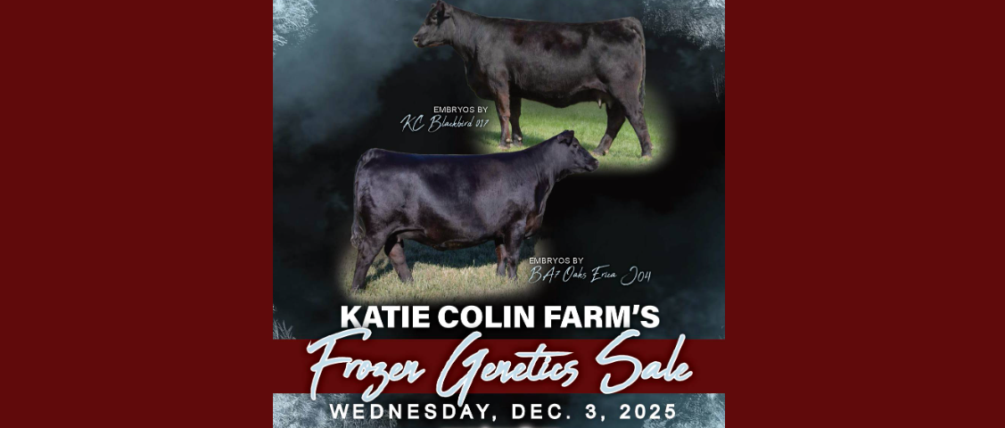 Welcome to the first-ever Katie Colin Farm Frozen Genetic Sale! We are offering our best genetics from the heart of our breeding program. These elite genetics will produce cattle with eye-catching phenotypes and top-ranking genotypes that will work for you.