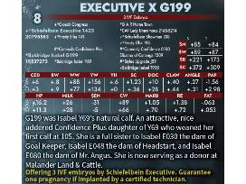 G199 was Isabel Y69's natural calf. An attractive, nice uddered Confidence Plus daughter of Y69 who weaned her first calf at 105. She is a full sister to Isabel E030 the dam of Goal Keeper, Isabel E048 the dam of Headstart, and Isabel E080 the dam of Mr. Angus. She is now serving as a donor at Malander Land & Cattle.