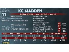 This stud is a maternal brother to the legendary POSS Ratified. Folks, he possesses an EPD profile that is so complete he can nearly read and write. He can do it all. Calving ease, explosive growth, elite carcass merit and, most importantly, he looks the part. He is sound, massive topped, big hipped and great footed. You can sort on economic traits, carcass merit or maternal traits, and Madden shows up. His dam is as impressively made and as sound as they come.