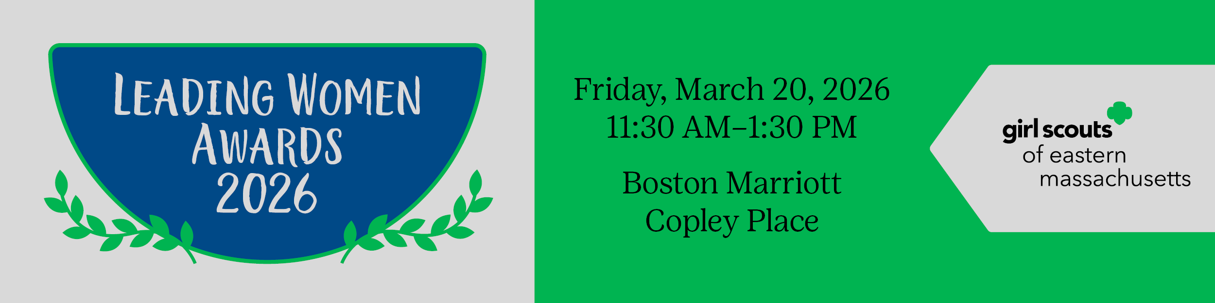 Please support Girl Scouts of Eastern Massachusetts by attending the 32nd Annual Leading Women Awards. Guests will have a change to network with like-minded individuals as well as enjoy lunch and an inspiring fireside chat. Our Leading Women, alongside notable Girl Scouts, will engage in a lively and enlightening discussion about their accomplishments and empowerment.