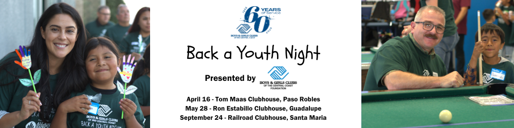 Back a Youth Night is a great event where we invite our friends to partner with a Club Member. You'll have dinner, participate in Club activities and get to meet a great kid who attends our Clubs. You will participate in five core program areas that are the foundation of Boys & Girls Clubs of Mid Central Coast programming: