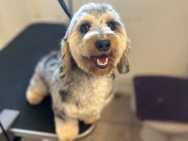 Ruff and Fluff Grooming offers a full-service dog grooming package. Includes bath with professional-grade shampoo and conditioner, high-powered blow out, teeth brushing, ear cleaning/hair plucking, anal gland expression, nail trim, paw pad trim, sanitary trim, full de-shed and/or haircut. We finish our salon experience with minty breath freshener and a spritz of dog cologne.