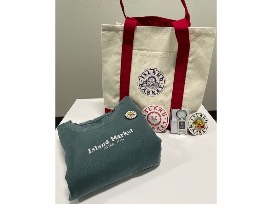 This swag bag is quite literally a bag, but with so much more. This sturdy canvas tote bag includes a cozy Island Market sweatshirt (size Large), plus a keychain, pin, and stickers!