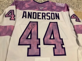 Bid to win a #44 Mikey Anderson signed Hockey Fights Cancer jersey