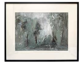 Acrylic with matted frame. Rivers Edge, by artist Edward Berkise. 16" x 20". Only conservation framing techniques and archival, acid free materials were used in the production of this piece. From the artist: "Each artwork embarks on a journey from abstraction to versatility, refraining from providing explicit solutions. Instead, I entrust the viewers with the task of finding their own interpretations."