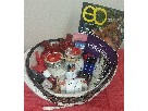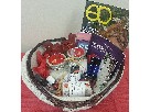 Young Living Essential Oils gift basket including: five oil sample packets, one jar homemade sugar scrub with essential oils; one jar of homemade bath salts with essential oils; two all-natural, essential oil-infused lip balms; one bar homemade, all-natural soap with lavender essential oils, two sample pouches of Ninxja Red energy supplement; one 5 ml bottle of therapeutic grade Tea Tree oil; one bottle Thieves spray; five 2 ml sample bottles for sharing oils with friends; two dark blue glass roller bottles with stainless steel roller ball for easy application of oil mixtures; $20 dollar coupon good toward the purchase of a Young Living Premium Starter Kit; one copy of EO Magazine; recipes/uses for various Young Living oils and brochures.