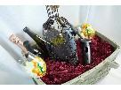 Five bottles of wine and more including: Slices Sangria, Lynfred Merlot, SEC Demi White, SEC Demi Red Table Wine and Free Run Cellars Reisling; an Epic Sur pull corkscrew and wine bottle foil cutter; a cork holder; two hand-painted wine glasses. Donated by Petals and Twigs, a Trinity Services support business.