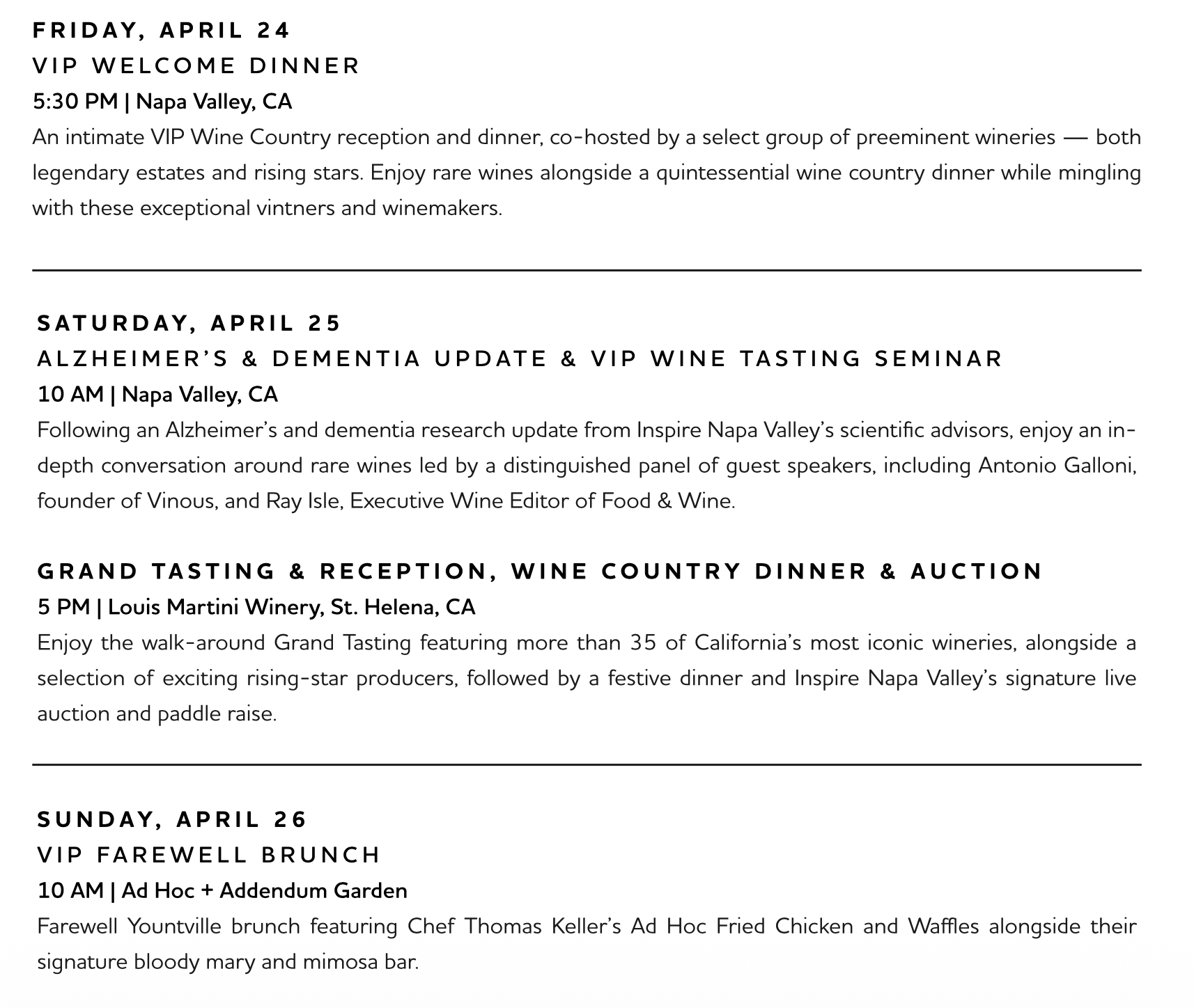Your credit card statement will reflect charges from ‘Inspire Napa Valley’