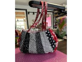 This black, red and white bag has 4 inside pockets and plenty of space to hold all your necessities!