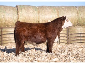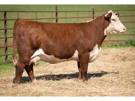 42F is a maternal machine. Elegant made with style,balance and maternal excellence. In the 2024 Female Event at Burns Farms she had a son, BF Power 225K ET, that commanded $72,500 for Spring possession and ΒΌ semen interest to Windisch Farms in Paola, KS. A Flush sold for $15,000 in the SmartAuction at the Congress sale to the Musser family in January 2024. ADaughters sold in the spring of 2023 that commanded $42,500 and $15,000. 42F will add body, length of neck and to date most of her progeny have largely been heavily pigmented and red-eyed. 42F is the Cowman's Kind of female and is the type to keep you in the Hereford Business for years to come.