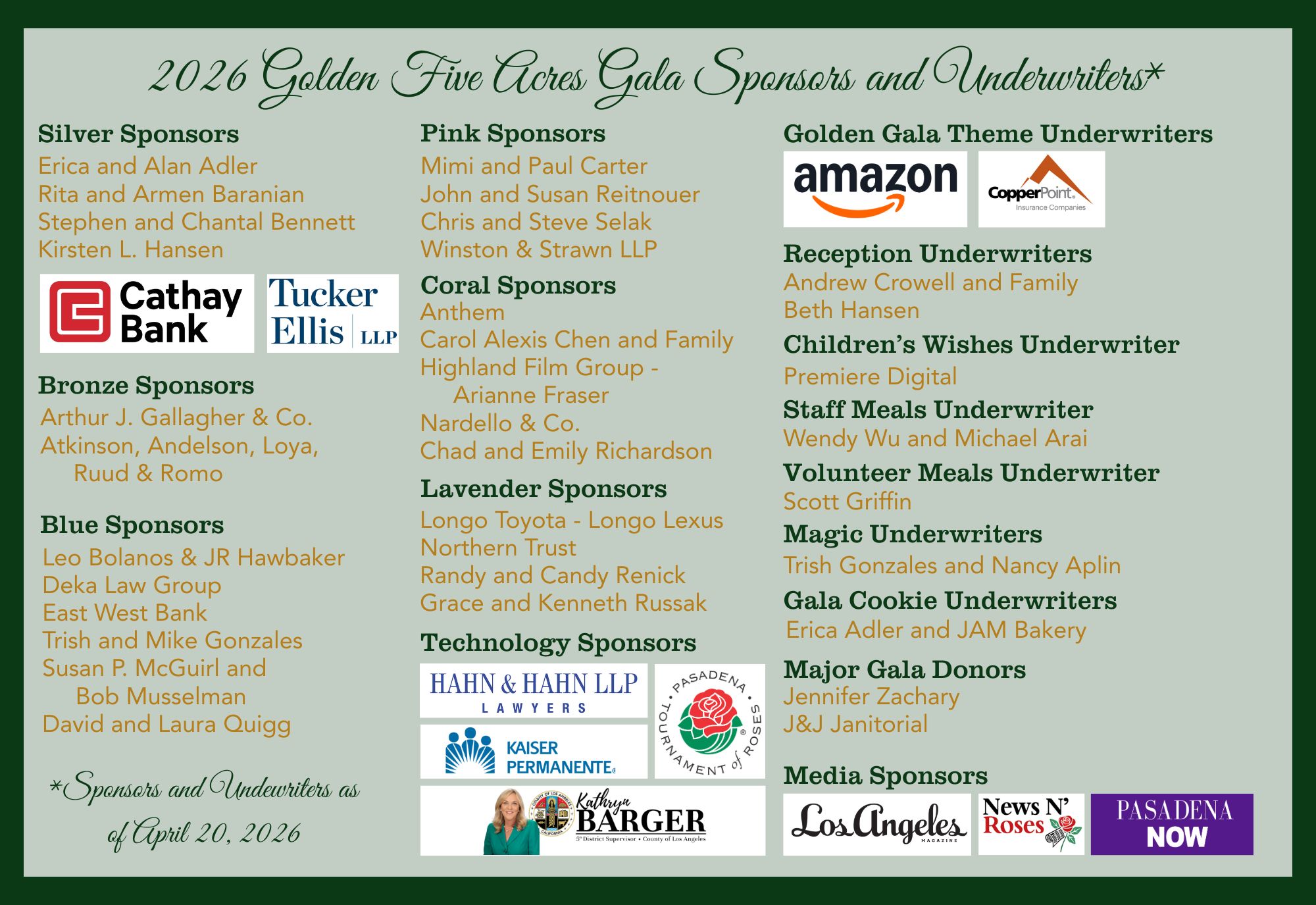 * For inclusion in the printed invitation, please confirm your sponsorship by March 31, 2026