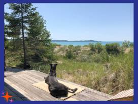 This cozy - and dog-friendly! - three bed/two bath log cabin overlooks Cathead Bay & Lake Michigan and is surrounded by the woods & sand dunes of Leelanau State Park. The cabin sleeps up to eight. This visit needs to be redeemed before October 31, 2026.