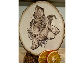Work with Nicole on a portrait of any beloved creature for a one of a kind tattoo or wood-burned portrait. Tattoo must be hand-sized and black and white portrait style and either option must be completed before the end of 2026.