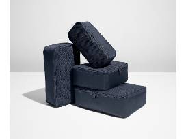 This package includes: Away's The Softside Bigger Carry-On in Navy Blue (Qty 1); The (Hardshell) Bigger Carry-on in Navy Blue (Qty 1); Set of 4 Navy Blue Packing Cubes.