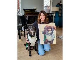 We all experience seasons of profound love and loss. It can be healing to keep our lost loved one with us, commemorated and close to our hearts. This package includes: Forget-Me-Not Circle Cremains sterling silver urn necklace, in which you can discreetly add cremains, from Gems & Juniper; 16"x20" custom acrylic pet portrait on canvas from MTPaints.