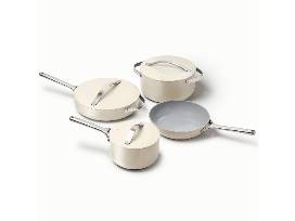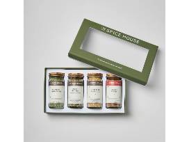This package includes: The Spice House Best Sellers Collection, including four spice jars; Caraway 12-piece ceramic cookware set.