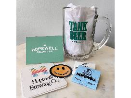 This package includes: Park & Field weekend brunch for two; $50 Hopewell Gift Card, Hopewell "Tank Beer" large glass mug, matches and stickers; Patagonia Terravia Mini Hip Pack 1L (Dried Vanilla).